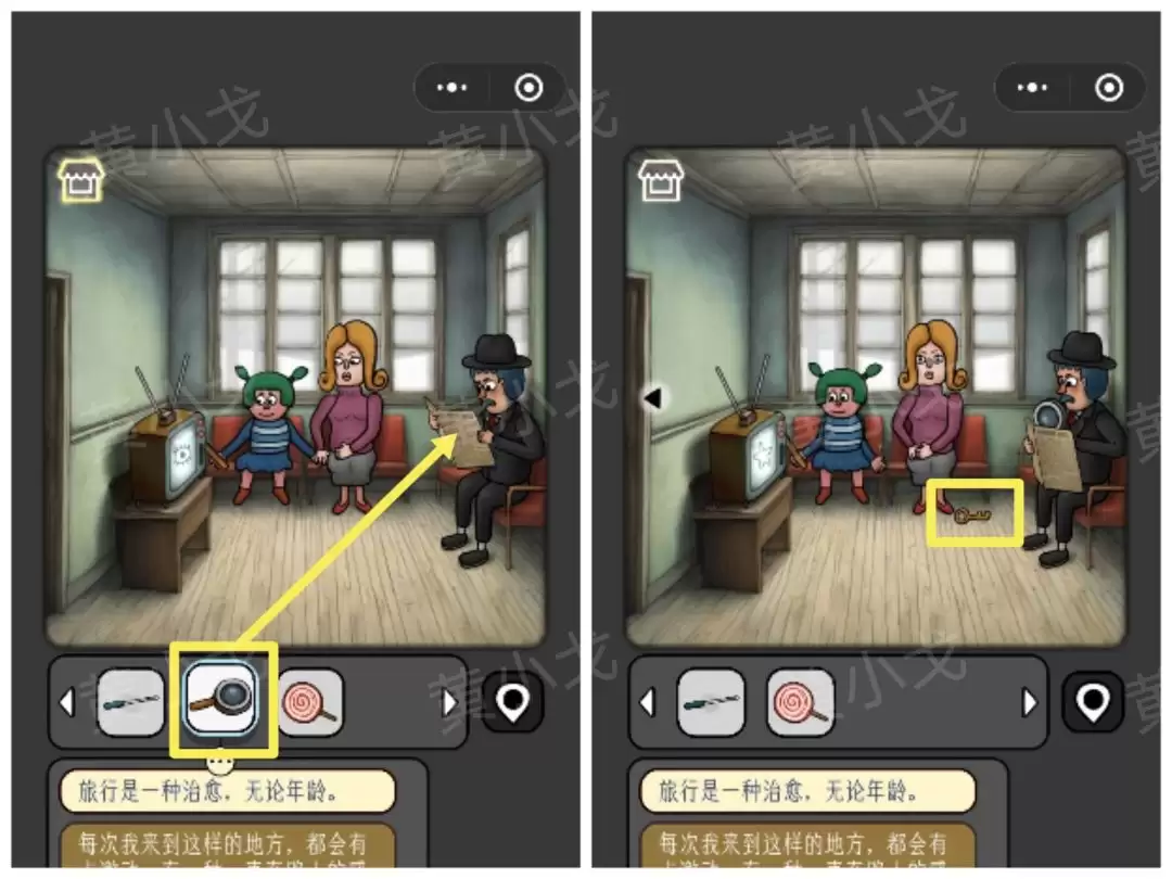 22. 回到候车室,把【放大镜】给那个男人,他会给你一把【钥匙】。