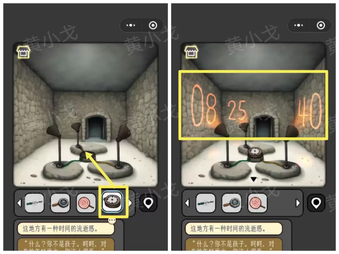 28. 回到石屋,把【秒表】放到那个奇怪的装置上,它会显示一组线索数字:08 25 40。