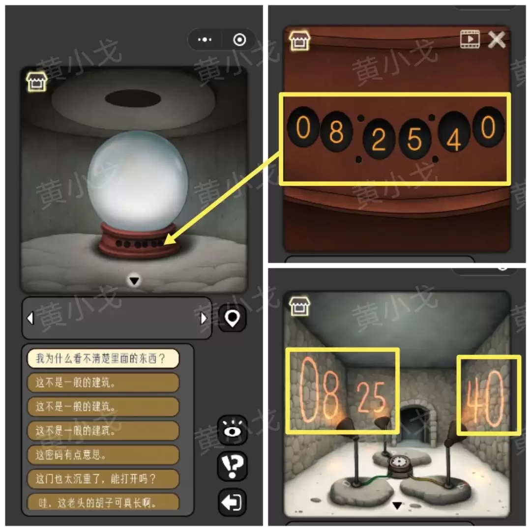 32. 最后,面对水晶球上的密码锁。还记得石屋装置给出的那组数字吗?没错,就是它。输入密码:08 25 40。