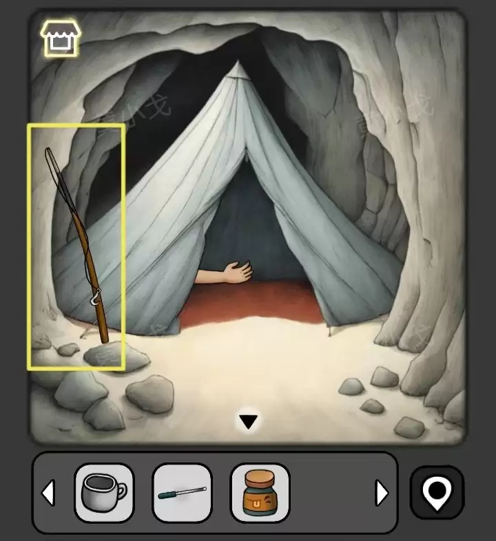 4. 帐篷旁边有一根【钓鱼杆】,拿走它。