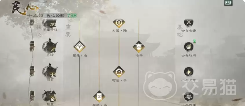 通关主线第二章后,至关重要的“民心系统”将全面解锁。你可以将其视为一个科技树:当民心达到1级时,将开启“苍绿”品质英雄的升阶路径,达成条件后,角色会解锁第一个追击技能格;民心提升至3级,将进一步开放追击技能槽位,这意味着你的武将在普通攻击后,可追加释放一次主动技能,单位回合内的输出效率将获得质的飞跃。此外,民心等级还直接影响着你挑战高级叛军的门槛以及村庄资源的产出效率,是前期全局发展的核心杠杆。