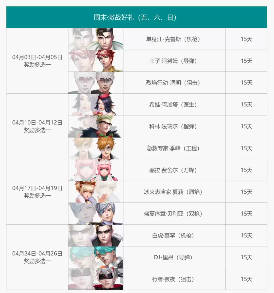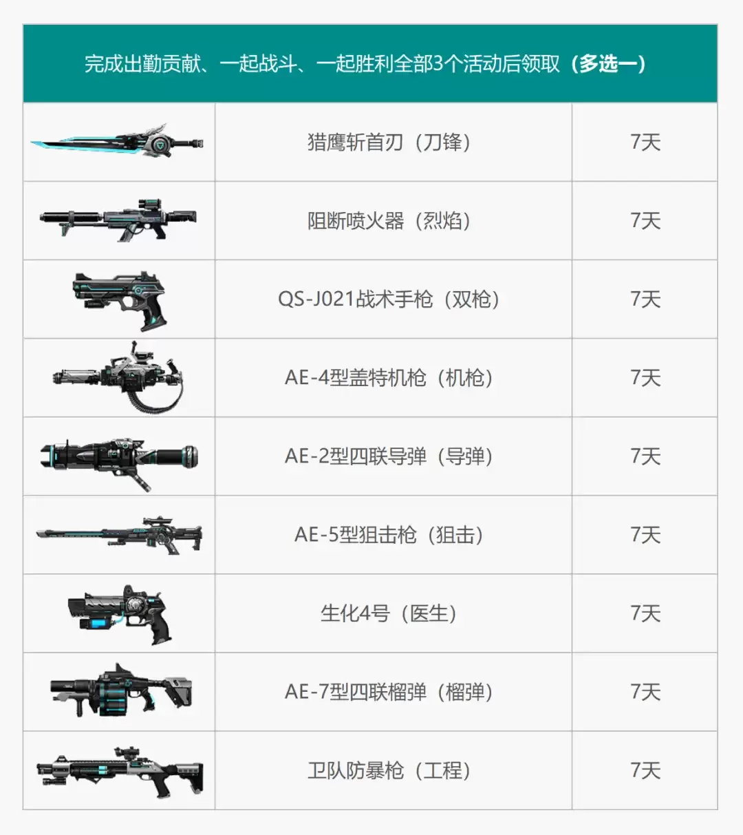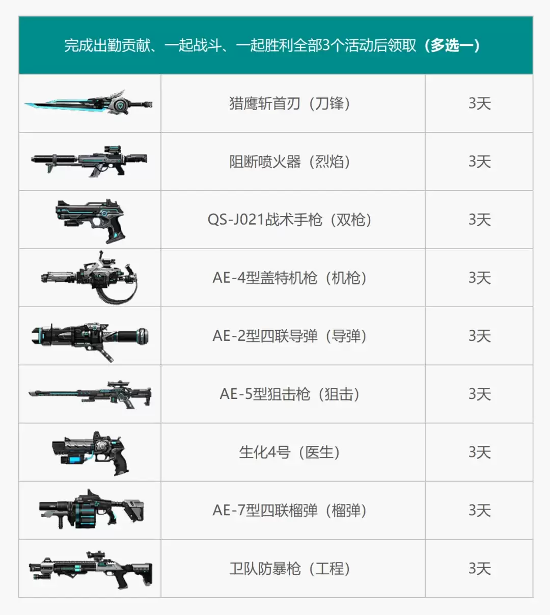 8、周末·激战好礼(五、六、日):完成指定任务后,可从多个奖励中自选其一。
