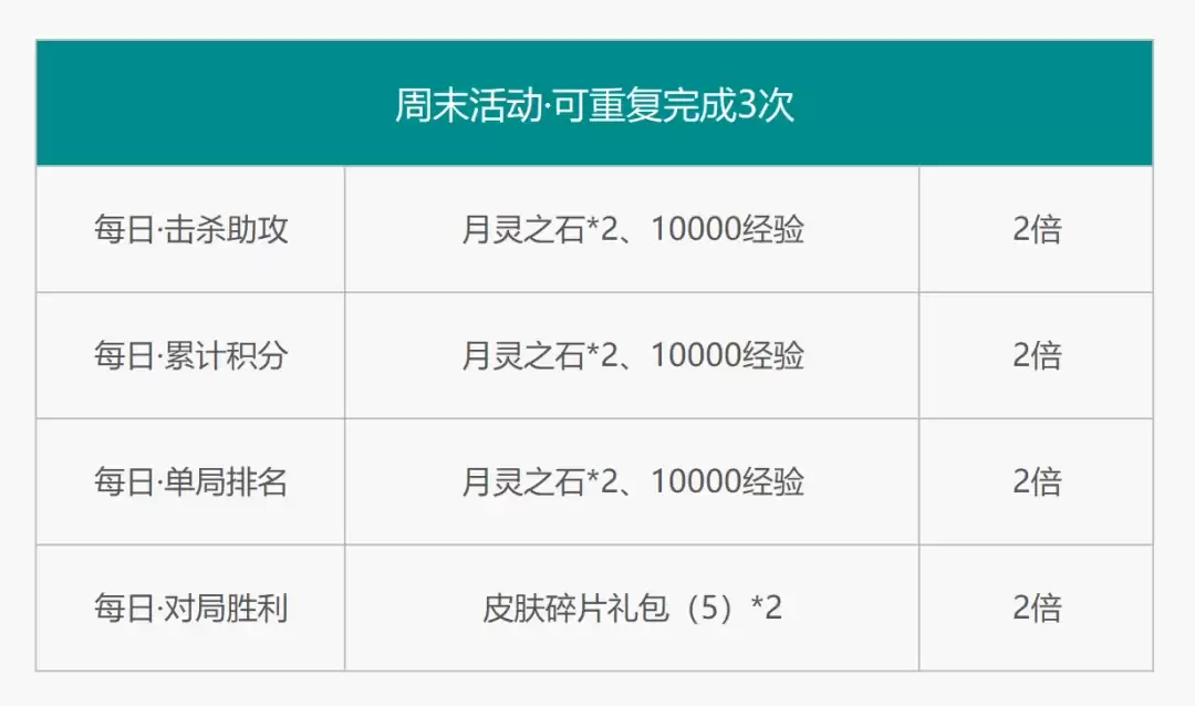 2、周末碎片活动(六、日):获取2倍月灵之石与经验奖励。