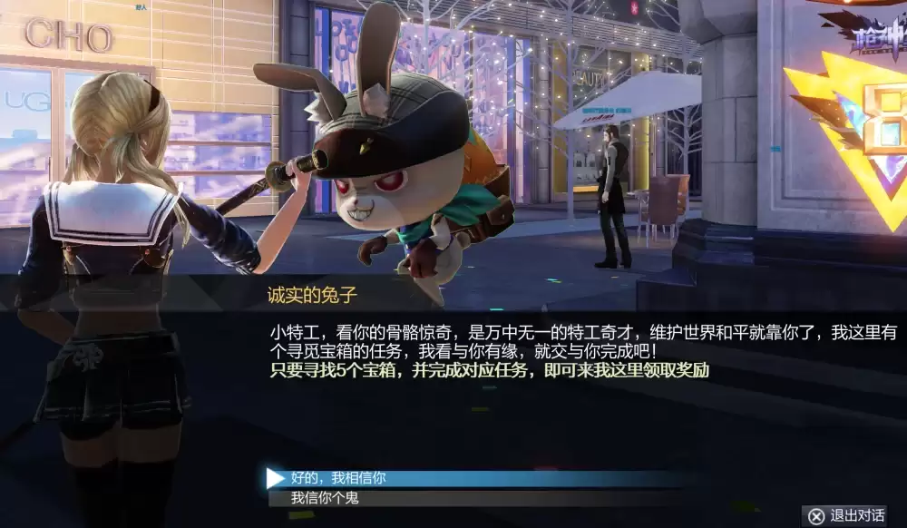2、玩家可选择相信线索,接取「宝箱搜寻任务」并在城内寻找宝箱;也可放弃当前任务,通过重新对话刷新任务内容。