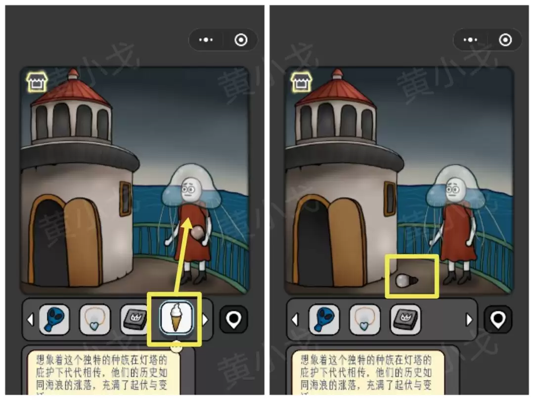 进入二楼右侧露台,把【冰激凌】给水母人,换到一个【灯泡】。