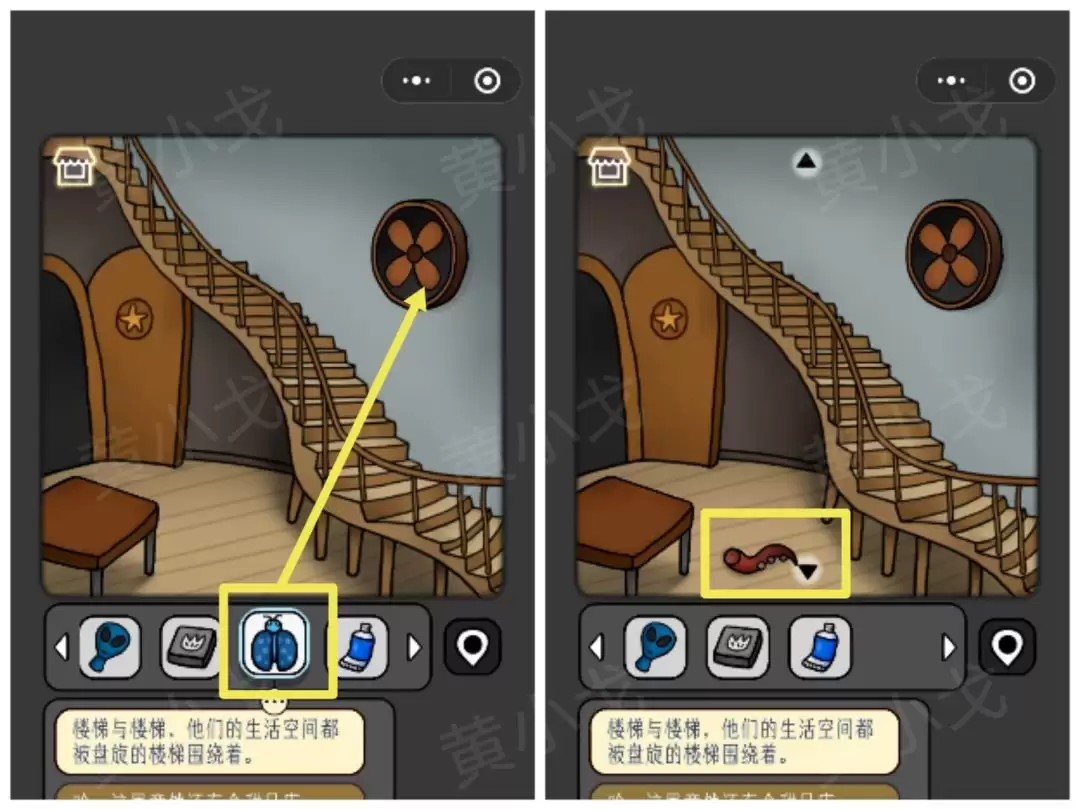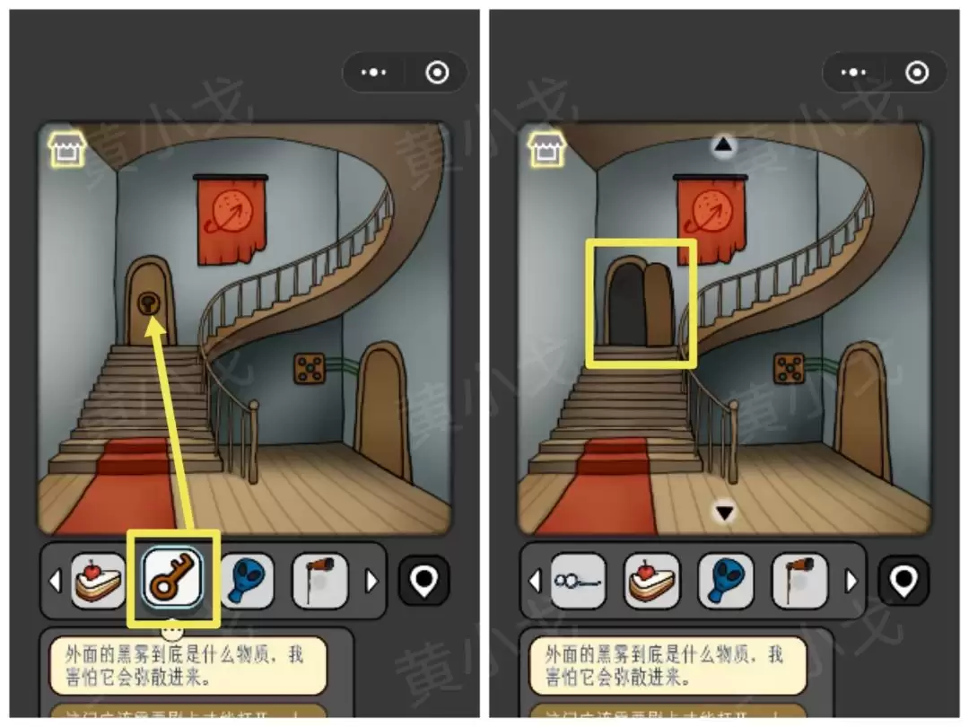 回到最初的起点。用从海星大叔那里换来的【钥匙】,打开楼梯口上锁的房间,进入一个全新场景。