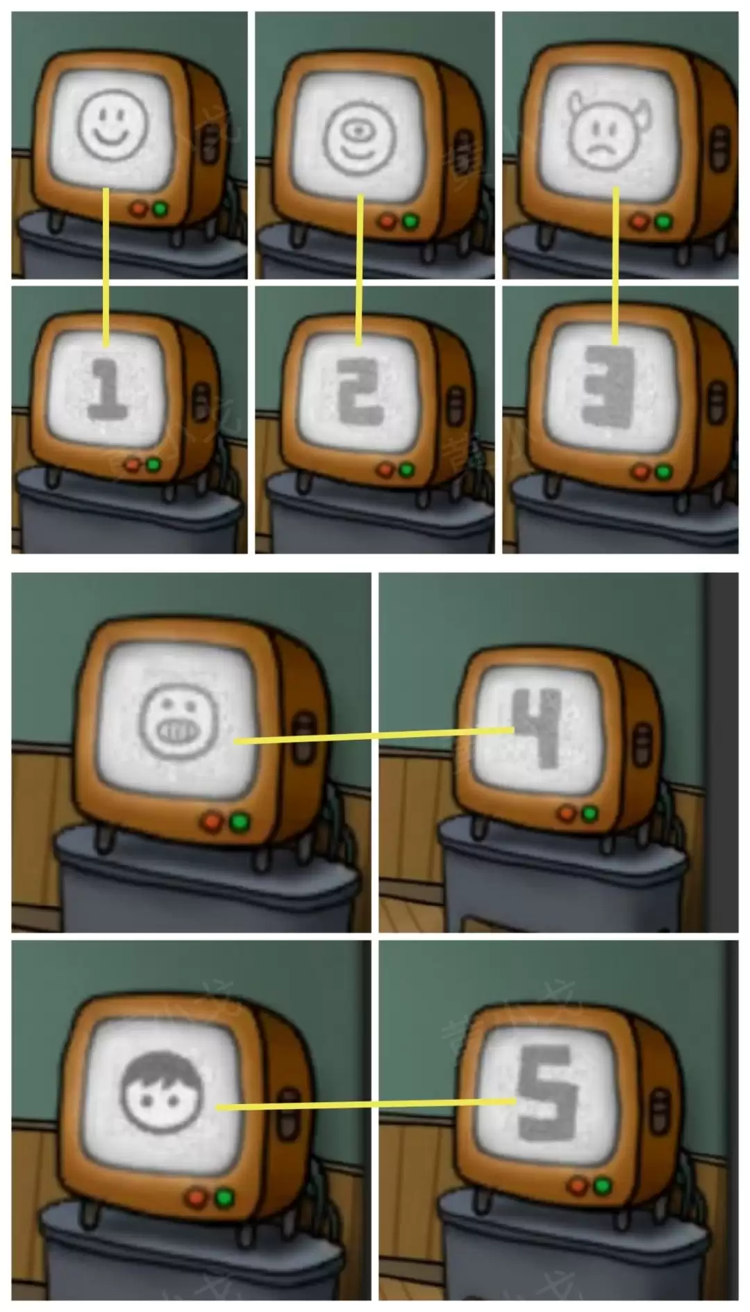 别忘了,仔细观察此时电视画面上的图案及其对应的数字,这是为最终谜题准备的另一条关键线索。
