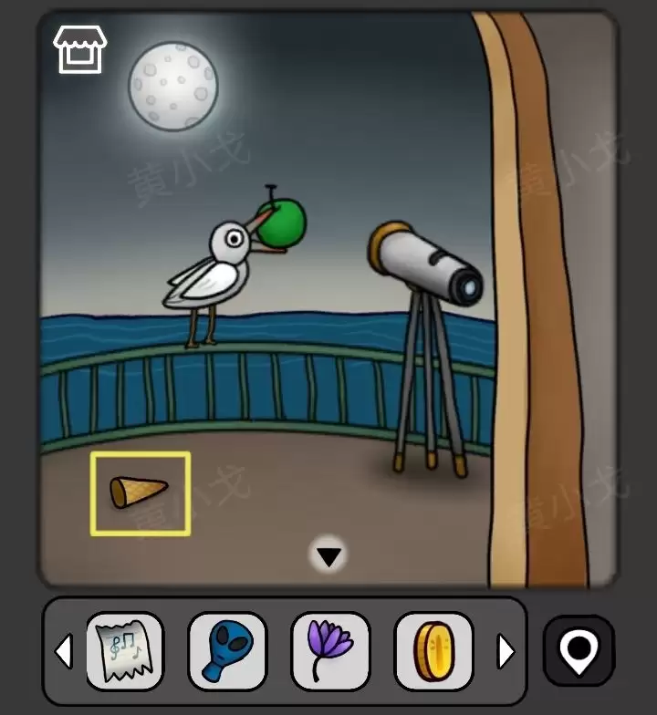 来到左侧露台,将【金币】投入望远镜,然后查看望远镜,可以获得一个【吊坠】。