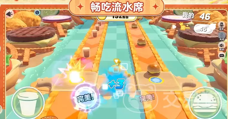 这一关的设定非常有趣。你的角色会固定坐在两条传送带的中央,左边源源不断地送来奶茶,右边则是汉堡。挑战在于,你需要精准把握时机按键接取食物——按早了或按晚了都算失误,无法得分。更有意思的是,随着你进食量增加,蛋仔的体型也会同步膨胀。最终,系统将根据实时积分排名决定晋级资格,积分最高的那位,将荣膺“最强干饭蛋”的称号。