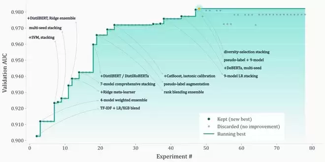 AiScientist最直观的结果,来自MLE-Bench Lite的Detecting Insults任务。