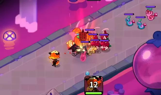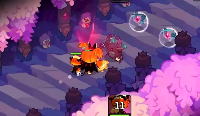 在《冲呀!饼干人:王国》里,每个饼干的特性都独一无二,对战时的技能触发效果也各不相同。南瓜饼干的辨识度就相当高——一身橙色的大裙摆服饰,配上同样亮眼的橙色头发,头上和背后的黑白元素点缀,是不是让你立刻联想到了万圣节的南瓜灯?作为魔法型角色,她通常被安排在中排负责输出。一旦触发技能“皮皮帮帮我”,就能在战场上造成大范围伤害。不仅如此,每次技能释放后,还会给对手附加一个减少治疗效果的减益状态。这个技能更厉害的地方在于,能召唤出一大群召唤兽,无论是用于集中攻击还是扰乱敌方阵型,效果都非常出色。