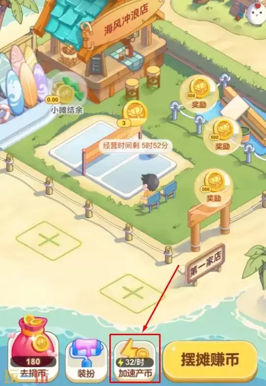 步骤二:进入蚂蚁新村主界面后,点击底部导航栏的“加速产币”按钮,查看所有加速途径。