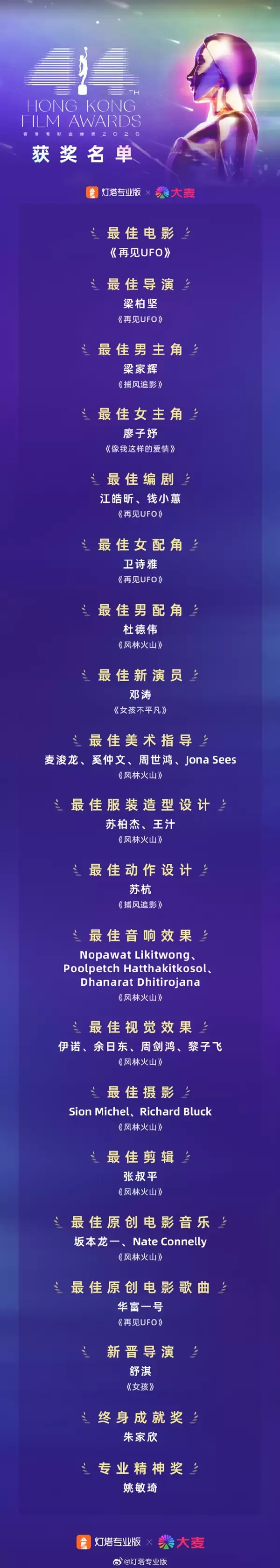 第44届香港电影金像奖获奖名单公布:《风林火山》豪取八项技术大奖