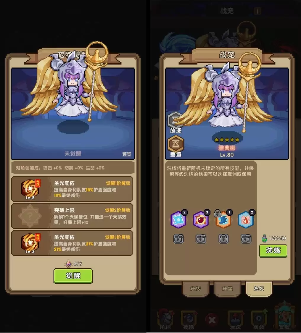 想让宠物真正成长为可靠的战力,离不开四个维度的精心养成:「升级」、「升星」、「洗炼」和「觉醒」。
