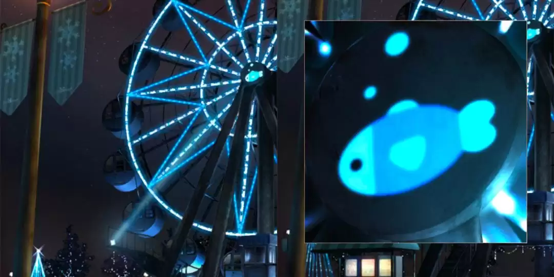 摩天轮缓缓转动起来后,注意观察它的正中央。一个新的图案出现了——一条“鱼”。