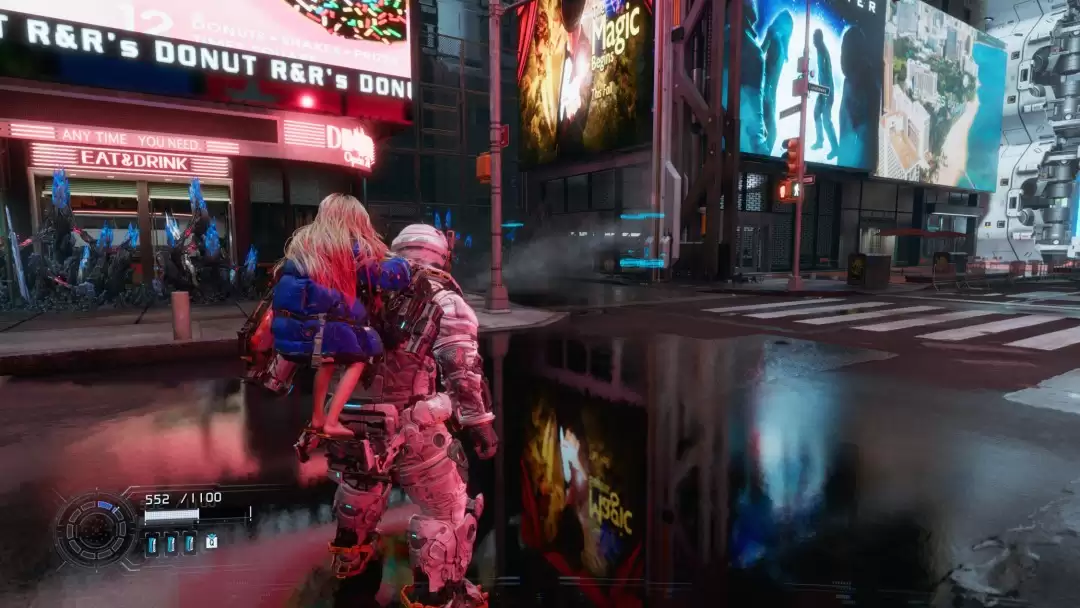 在传统光栅化模式下,“休”的自我倒影会出现在“摇篮”场景的部分表面上,但有时你只能看到他战斗服的一部分映在其中,而非完整的人物形象。虽然这些问题还不至于严重到破坏游戏核心体验,但它们确实会不时地打破沉浸感,仿佛在提醒玩家:眼前所见终究是游戏画面,而非一个无缝的真实世界。
