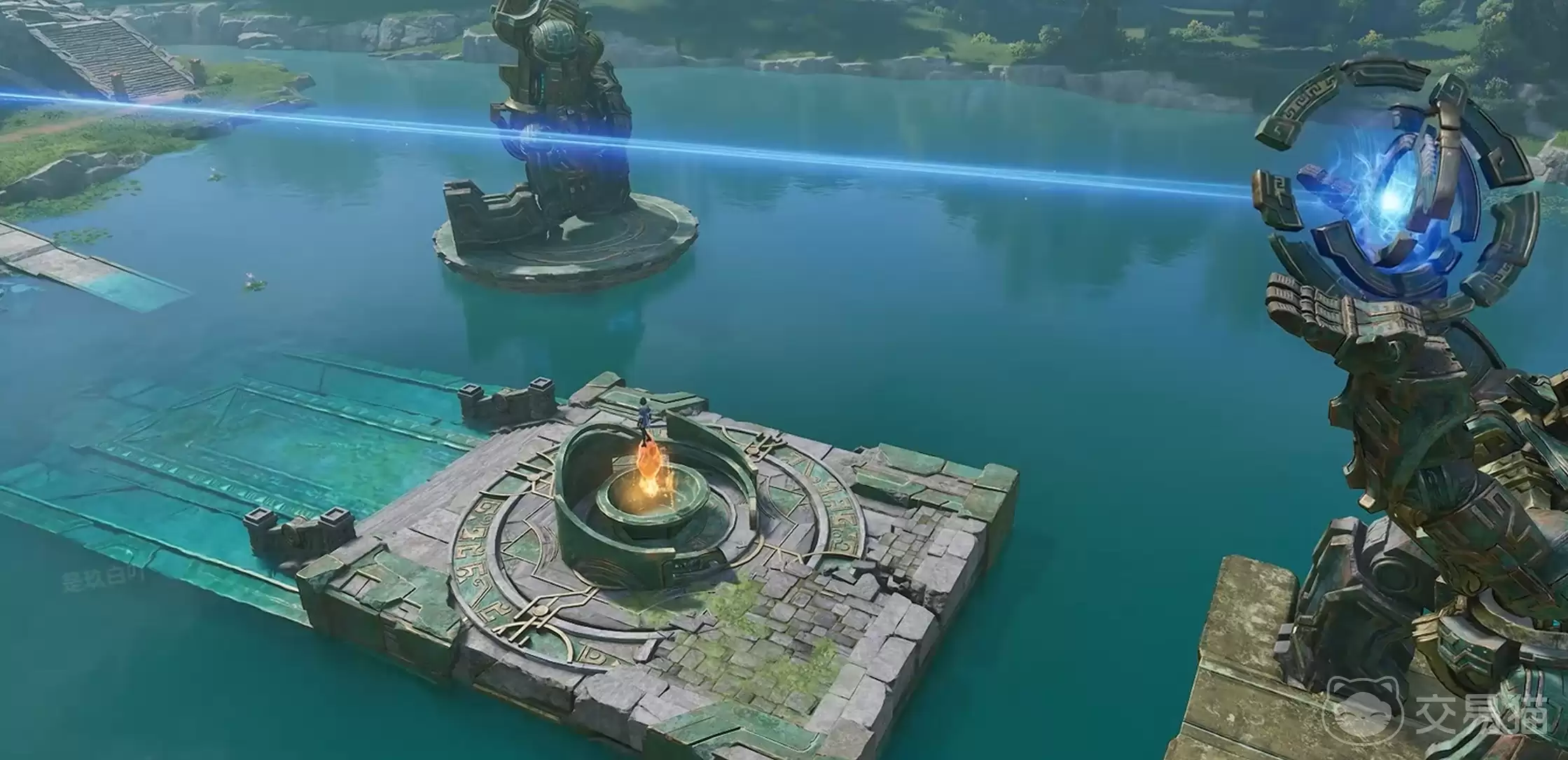 第一枚“叠嶂符印”,位于鹤鸣馆渡石左上方的“伏流窟”。击败守关的机关人后,瞄准窟顶的悬挂物投掷燃烧果,触发连锁机关,解谜成功就能开启宝箱。但这还没完,接着你得潜入水下区域,在底部的沉积层里,才能拾取到这枚符印。另一枚“亘古符印”,放在穿云狭间渡石上方的“流影谭”。跟着宝箱河灵下潜,在水下祭坛的平台处就能拿到。顺带一提,这个区域还有两个额外宝箱可以顺手开启。
