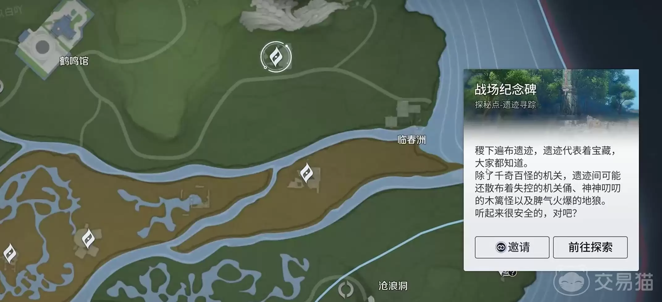 臂甲碎片呢,藏在春溪古战场渡石的“空名冢”。你需要推动石碑,触发碑文依次亮起的效果,然后按照正确的顺序激活整个碑阵,才能拿到它。至于胸甲碎片,位置在翠箩野渡石左侧的“隐形石板”附近,相对直接一些:把周边的敌对单位清理干净,它就会自动解锁。