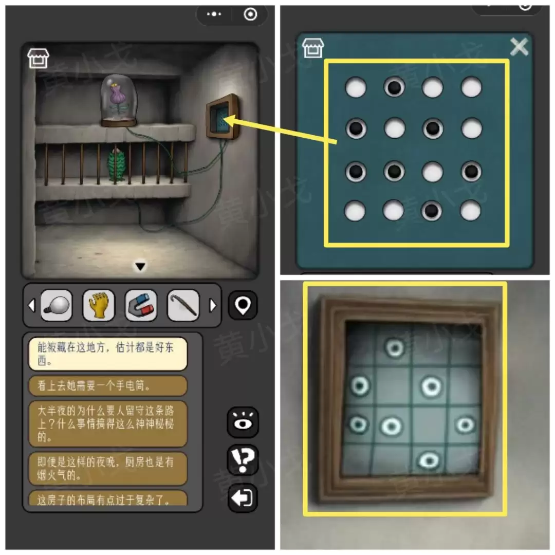 23. 注意墙上有个机关。还记得小男孩房间墙上的画吗?根据那幅画提供的线索,来调整这个机关。