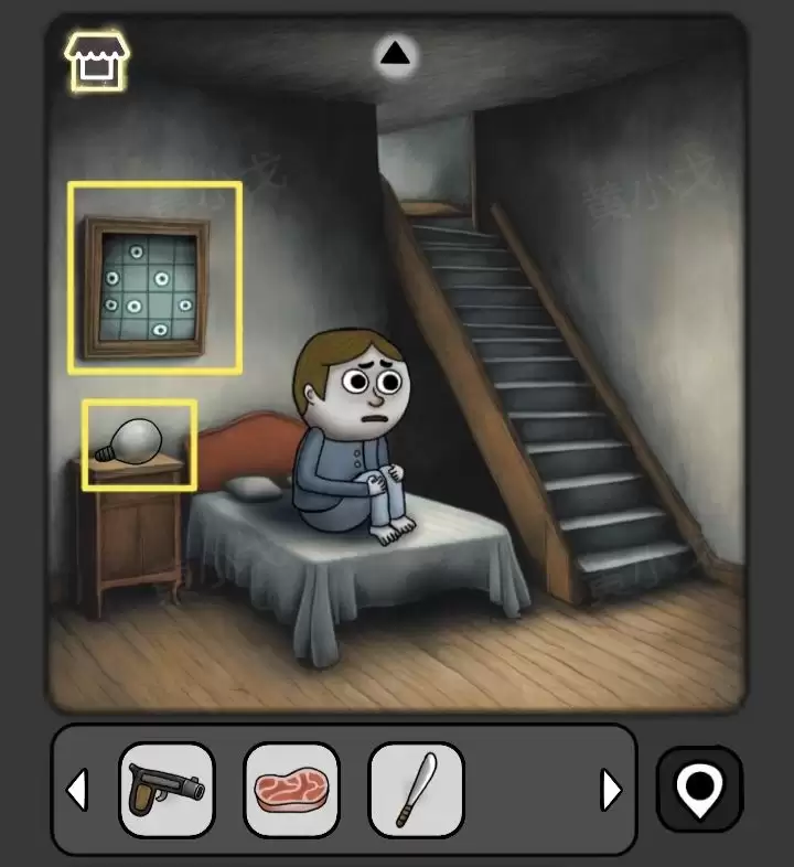 3. 来到小男孩的房间。床头柜上有个【灯泡】,记得拿走。另外,墙上的那幅画暗藏玄机,务必多看一眼,后面会用上。