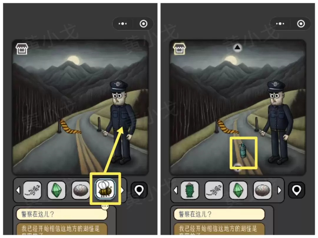36. 再去找警察一趟。用吸引来的【蜜蜂】和他交换,换得他手中的【显影剂】。