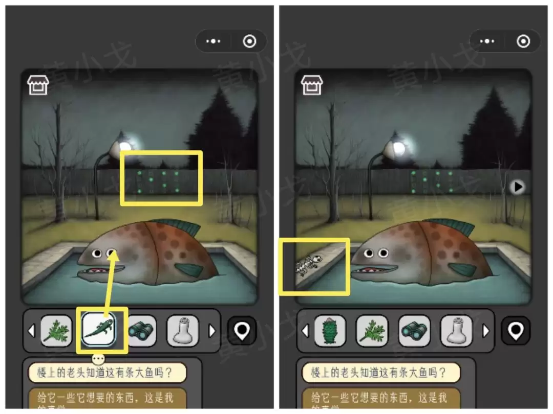 30. 别急着走,多次点击鱼怪,它还会再吐出一条【鱼】给你。