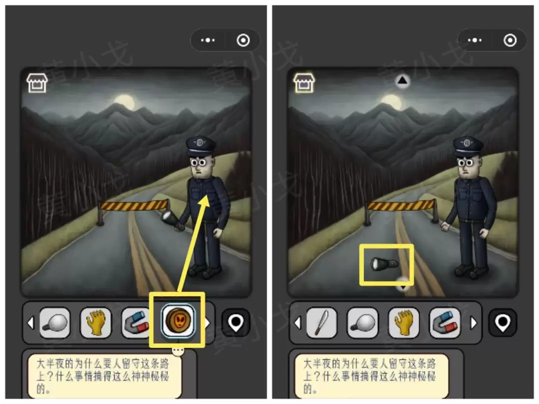 13. 去找警察。把从小男孩那里换来的【金币】给他,他会给你一个【手电筒】。
