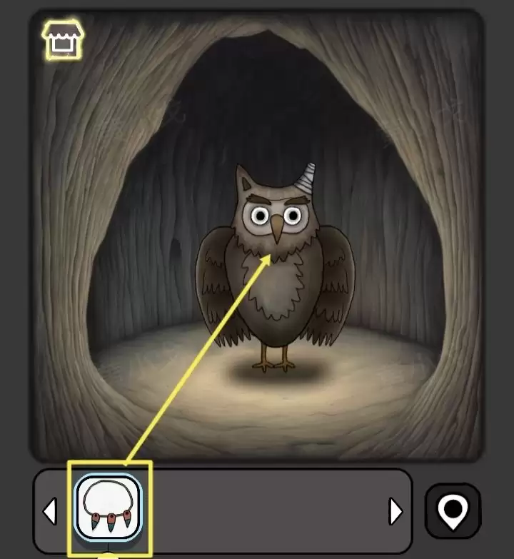 43. 最后,找到猫头鹰,为它戴上【项链】。猫头鹰戴上项链后,便会展翅飞走。至此,所有谜题解开,关卡圆满通关!