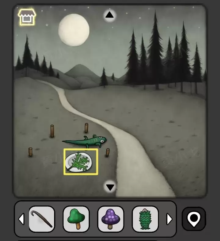 26. 在新场景里,地上长着【绿蘑菇】,直接拾取。