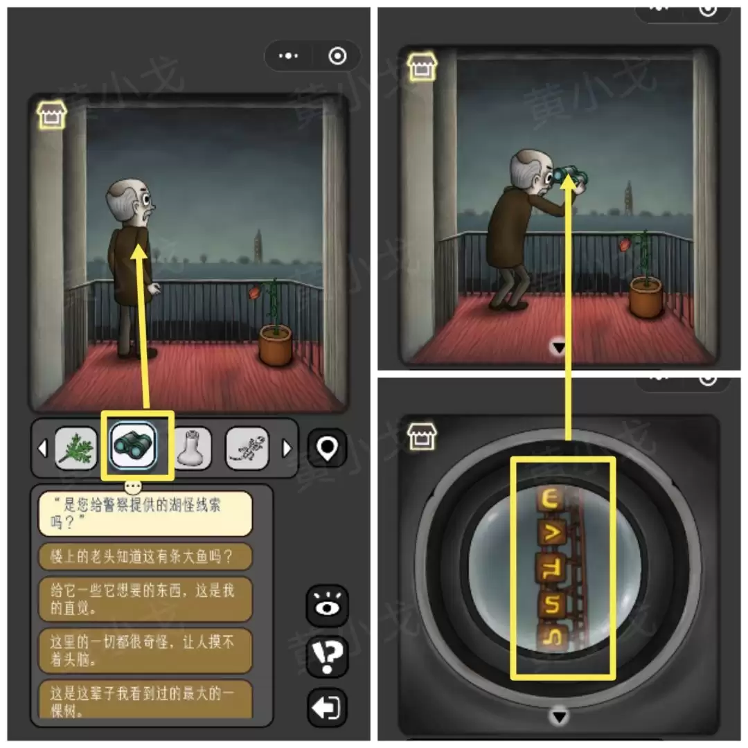 32. 去找老爷爷,把【望远镜】给他。他会用它眺望远方,并告诉你他看到的线索。
