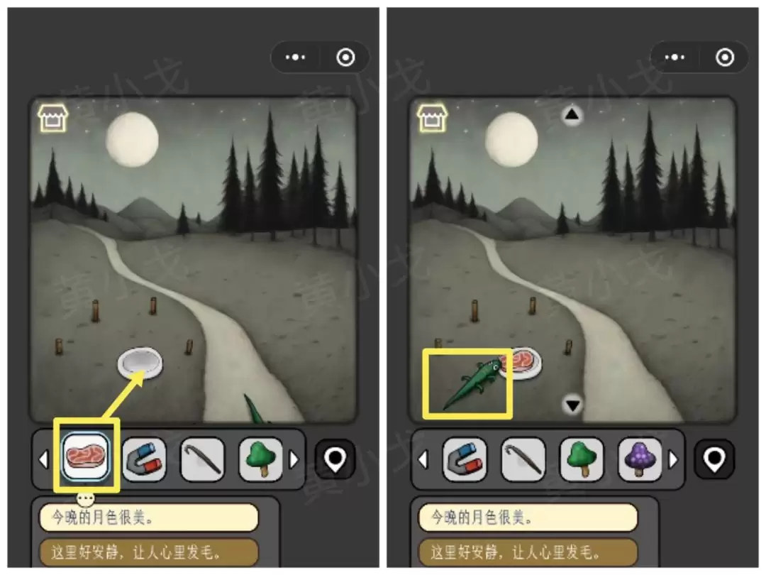 16. 把厨房捡到的【肉】喂给蜥蜴。吃饱后,蜥蜴就会乖乖跟着你,成为道具【蜥蜴】。