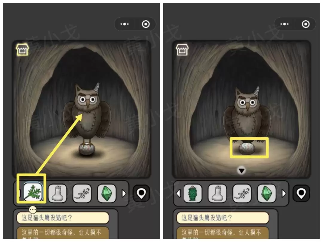 20. 找到猫头鹰,把从蜥蜴碗里拿的【食物】给它。猫头鹰会回赠你一颗【蛋】。
