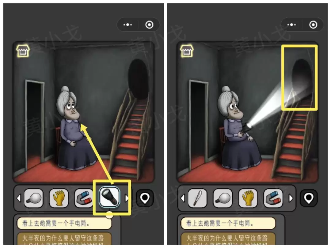 21. 去找老奶奶,把【手电筒】交给她。她会让开路,你就可以进入后面的陈列室了。