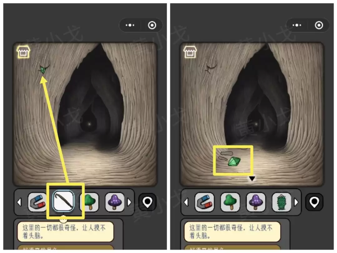 37. 还记得那个树洞吗?用【撬棍】撬开石头缝隙,可以撬出一颗卡在里面的【宝石】。