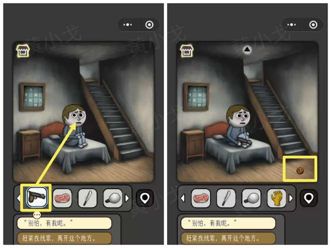 4. 把刚才拿到的那把【枪】交给小男孩。作为交换,他会给你一枚【金币】。