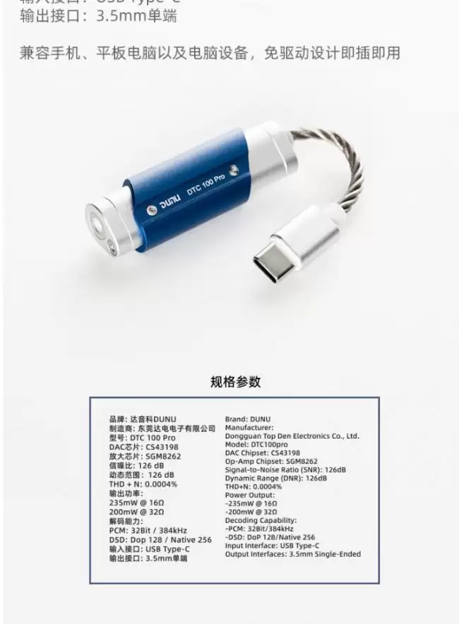 音频规格方面,这款解码耳放支持最高32Bit/384kHz的PCM解码,并兼容DoP128及Native256标准的DSD格式播放,全面覆盖主流高解析音频文件。连接线材选用高纯度单晶铜镀银线,以降低传输损耗。输出端配备标准3.5mm单端接口,确保广泛的设备兼容性。