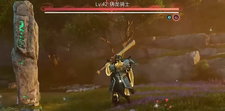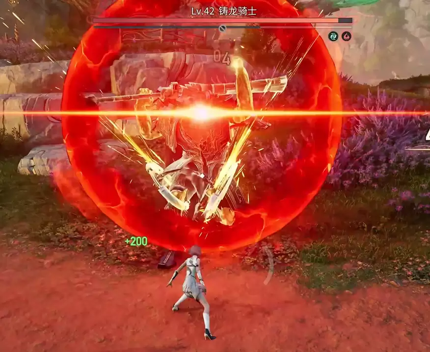 铸龙骑士最具威胁的攻击通常伴随“红光”预警。一旦Boss体表泛起红光,必须立即使用Shift闪避。成功闪避后,你将获得一个短暂的反击窗口,此时攻击可使其陷入眩晕。眩晕状态下,Boss的蓝条(护盾值)将显现。集中火力快速击破蓝条,即可触发“晕厥击破”状态。这是整场战斗的第一个关键输出节点,务必在此期间倾泻你的主要技能。