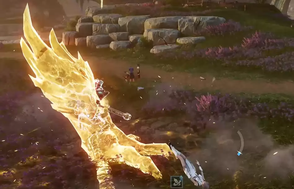 “金光利爪”是另一个需要条件反射式应对的秒杀技。Boss凝聚金色巨爪猛击,单次伤害极高,连续命中必被击杀。该技能发动前同样有清晰的红光提示。看到红光瞬间,必须毫不犹豫地进行闪避。若当前角色状态不佳,一个稳妥的战术是直接切换角色,利用满血角色承伤或争取时间,待主力角色恢复后再换回继续战斗。