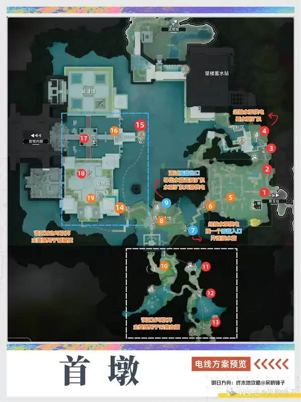 首墩地区的地形结构颇具特点,电力网络的铺设不能只盯着直线距离。关键在于找到几个核心的能源中继点和地形制高点。简单来说,你的任务是以发电设施为原点,构建一个能够覆盖关键滑索锚点的输电网络。那么,具体路径该怎么规划呢?下面的图示提供了清晰的方案。