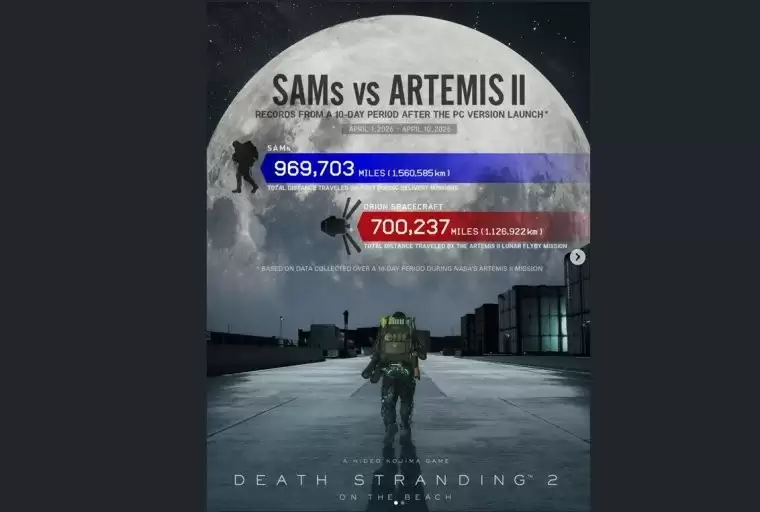 知名游戏制作人小岛秀夫近日披露了《死亡搁浅2:冥滩之上》的一项核心游玩数据,并将其与NASA的阿尔忒弥斯2号载人绕月任务进行了直接对比。数据显示,在游戏发售后的首个十天内,全球玩家操控角色山姆·波特·布里吉斯累计步行的总里程,已远超现实世界中猎户座飞船同期飞行的距离。