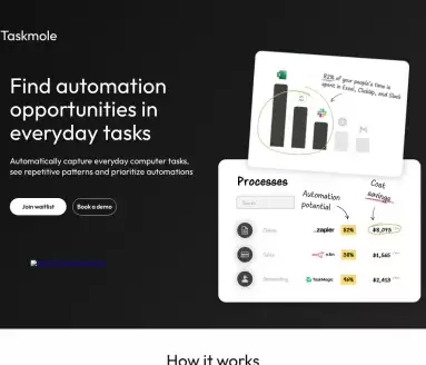 AI Doctor for Business 是 Taskmole 推出的企业流程智能诊断与自动化解决方案。它专为识别并优化企业日常运营中的重复性任务而设计,通过自动化手段直接提升运营效率与生产力。其核心机制融合了任务挖掘、流程可视化与智能自动化建议,能够精准分析员工的实际工作流,并在您现有的工具生态中直接构建自动化方案。无论是创业者、自动化专家还是IT决策者,都能借助它实现从流程洞察到自动化实施的无缝闭环。