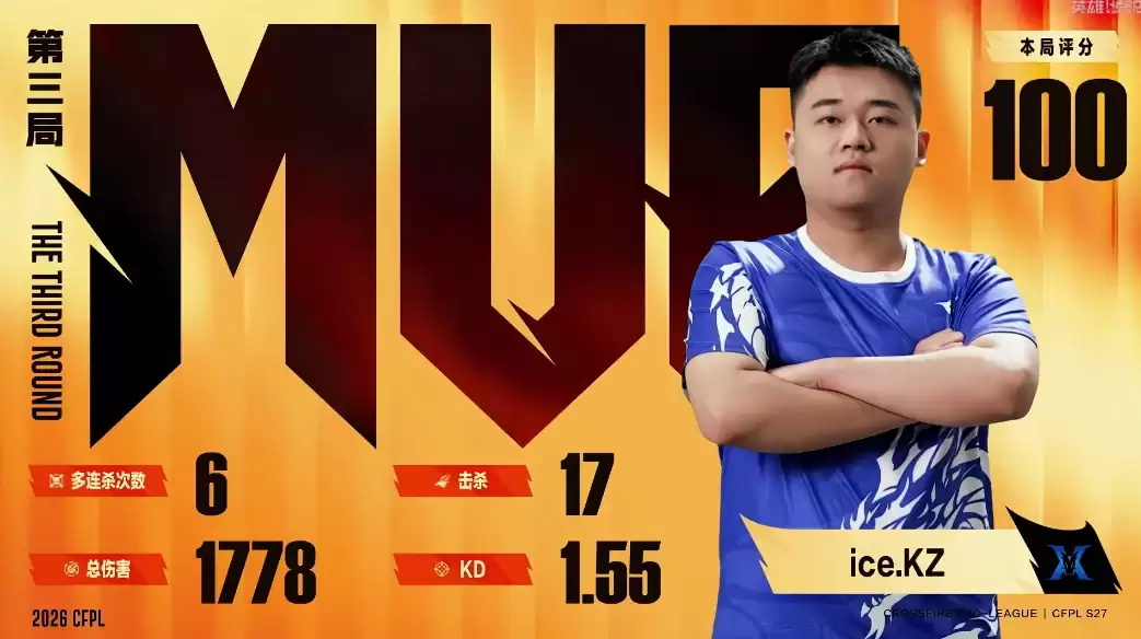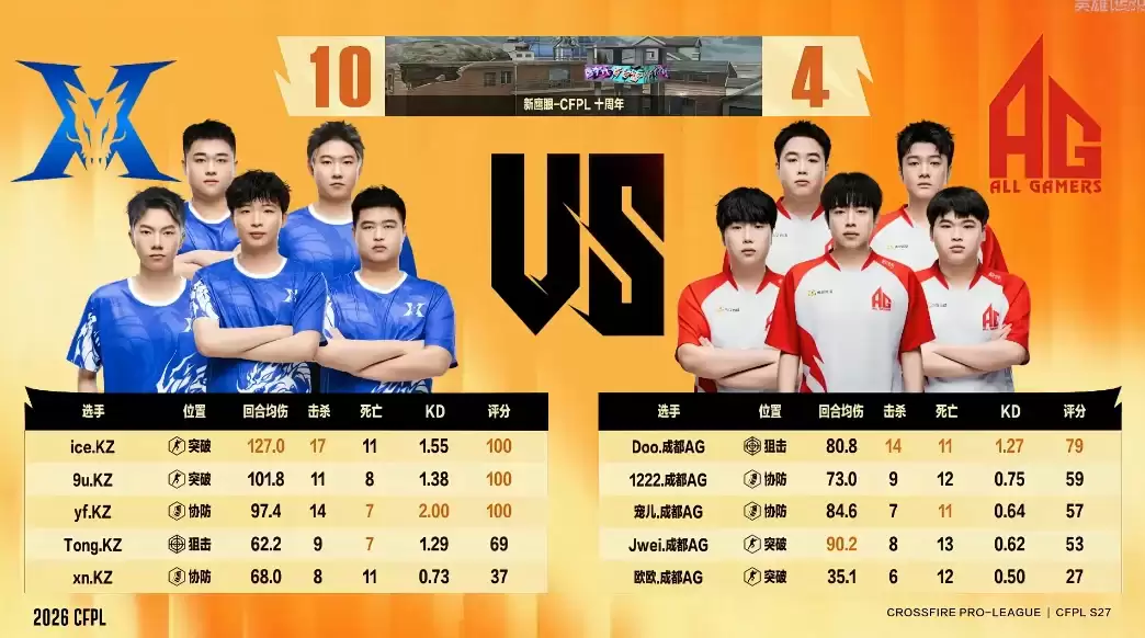 背水一战的KZ在第三局新鹰眼地图上爆发了强大的能量。开局阶段,Jwei的突破双杀和yf在B包点的狙击刷屏相互辉映,Doo也贡献了丝血狙击三杀的操作,双方战至3-3平,场面异常胶着。转折点出现在一个残局,成都AG在5V2的人数优势下出现致命失误,被KZ抓住机会。紧接着,KZ的ice彻底接管比赛,他在蓝门和A包点的防守中上演“左右横拉”式刷屏,完成四杀,瞬间点燃全场。KZ趁势打出一波6-0的进攻精彩处,彻底击穿了AG的防线。尽管宠儿在防守蓝门时刷屏得分试图止血,但KZ的攻势已不可阻挡,他们以10-4干净利落地赢下第三局,将总比分扳为1-2。本局MVP,毫无疑问属于手感爆棚、以一己之力改变战局的ice。