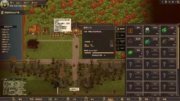 基础建设完成后,需立即启动经济引擎。打开炼金术面板,选择任意一种基础草药,通过拖动滑块来设定其自动生产量。这是你资源管理体系的起点。