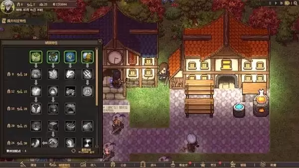 成功通关地下城不仅能获得资源,还会奖励宝贵的技能点。打开城镇特性面板,这里有一整条技能树,使用技能点可以永久性提升你的村庄在资源产出、建造速度等方面的各项能力。