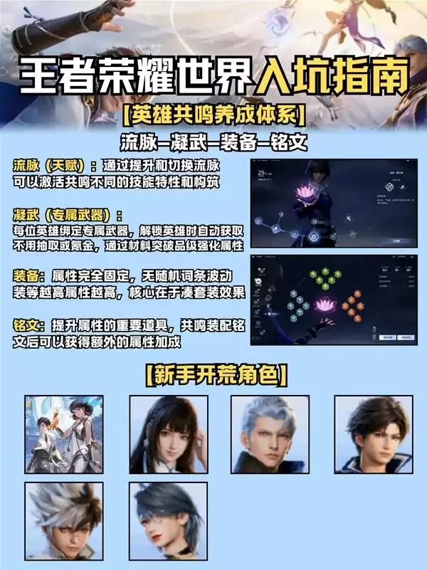 想要英雄发挥全力,离不开一套完整的养成体系。这条成长路径可以概括为:流脉—凝武—装备—铭文。