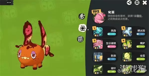 最后要介绍的化蝶,可以说是将“生存”艺术发挥到了极致。它依赖一个名为“化简”的逆天特性:当受到致命伤害时不会倒下,而是会退化成上一阶段的形态。这相当于它拥有了三条独立命,想要彻底解决它,对手必须连续击倒它三次。