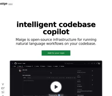 Maige是一款AI驱动的开源基础设施,专为代码库的自然语言工作流自动化而设计。它本质上是一个部署在你GitHub仓库的智能代理,能够理解并执行基于文本的指令,直接通过GitHub API完成一系列操作。其核心价值在于将AI的语义理解能力与GitHub的日常管理任务(如问题分类、PR审查、代码生成)无缝结合,让开发者用描述性语言即可配置复杂的自动化流程,从而替代重复的手动操作。