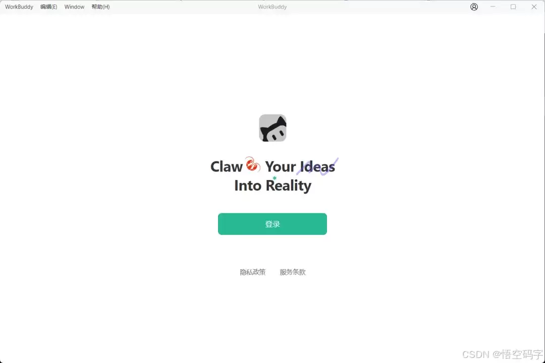 安装完成后启动WorkBuddy,点击登录按钮即可通过微信或手机号完成账号注册与登录流程。