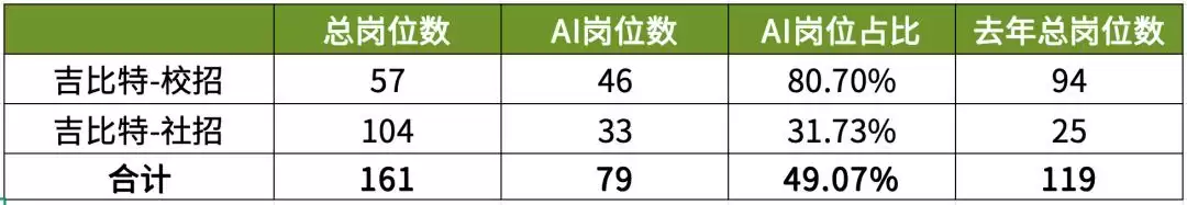吉比特的AI化程度尤为突出,社招AI岗占比达32%,校招更是高达81%。其将“AI工具的理解与运用”写入了绝大多数岗位的加分项。董事长卢竑岩在财报会议上坦言:“AI已经从工具变成了共同创作的伙伴。”