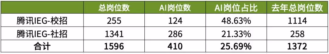 腾讯IEG部分AI相关岗位,选自官网招聘信息